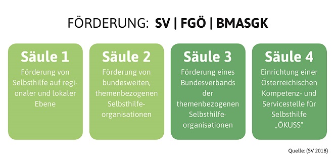 - die Errichtung der Österreichischen Kompetenz- und Servicestelle für Selbsthilfe (Säule 4) – kurz ÖKUSS – vor.